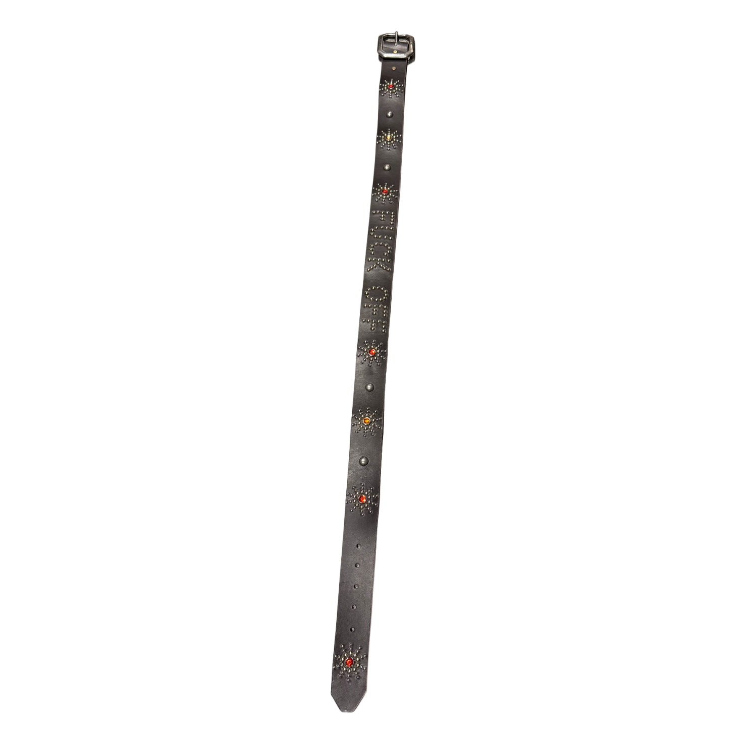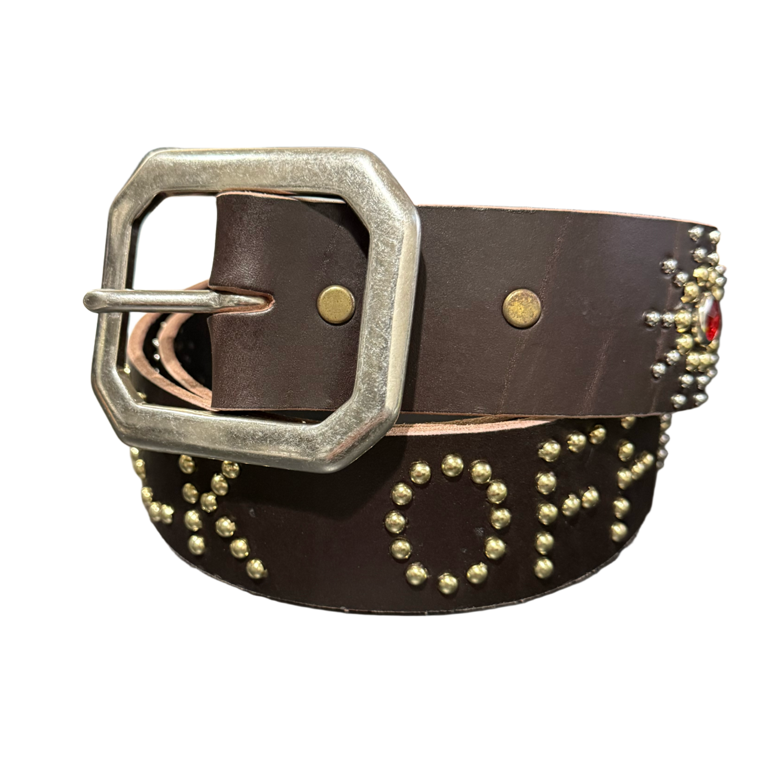 Studded 'Red/Orange Sun Gem' Fuck Off Brown Leather Belt - 173E44F0