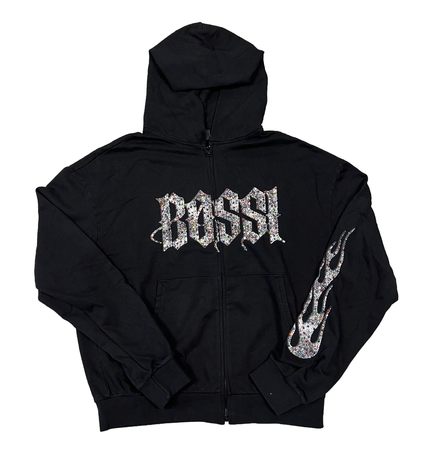 Bossi 'Multi-Color Rhinestone' Black Zip-Up
