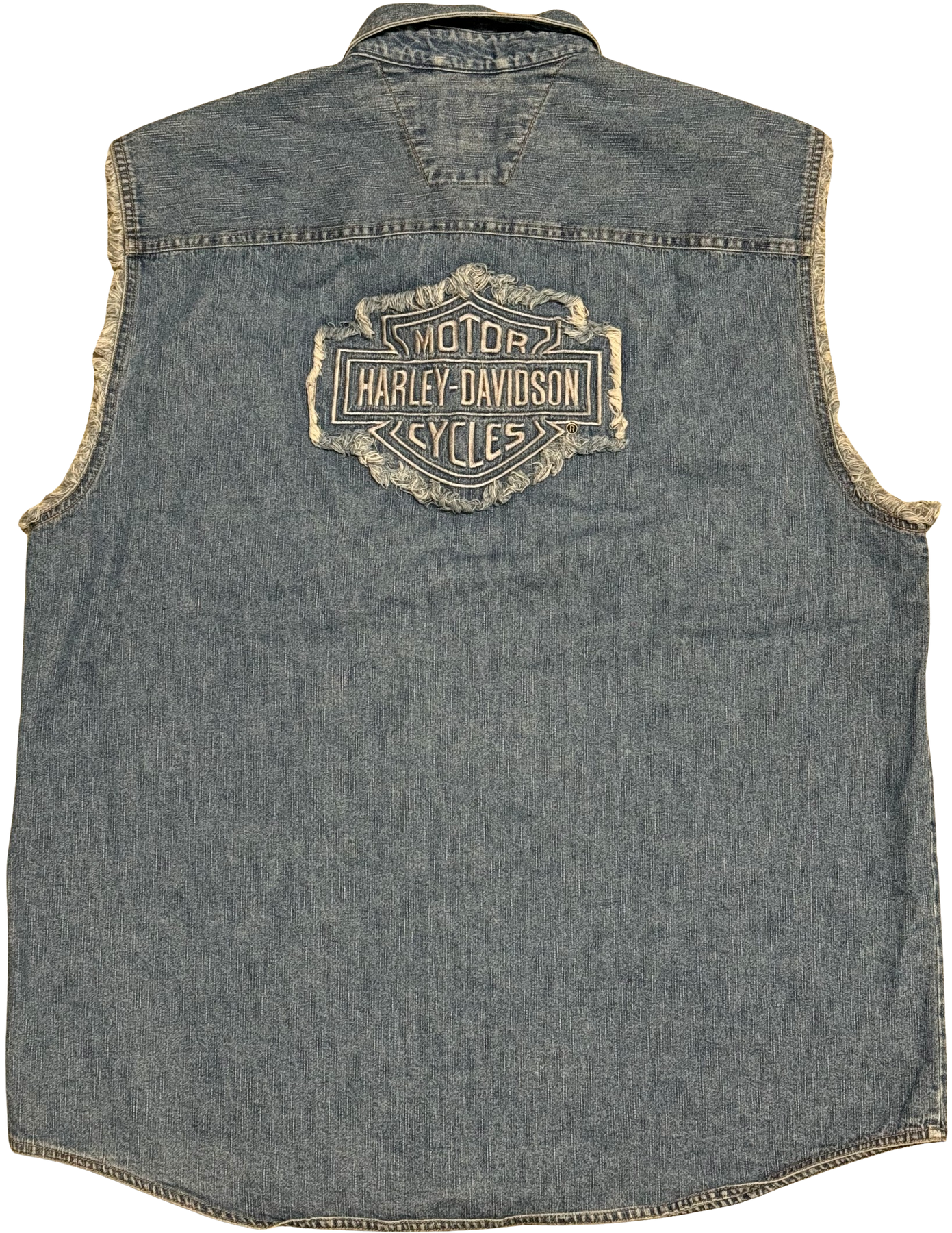 Harley Davidson '100 Years' Vintage Cutoff Button Jean Shirt