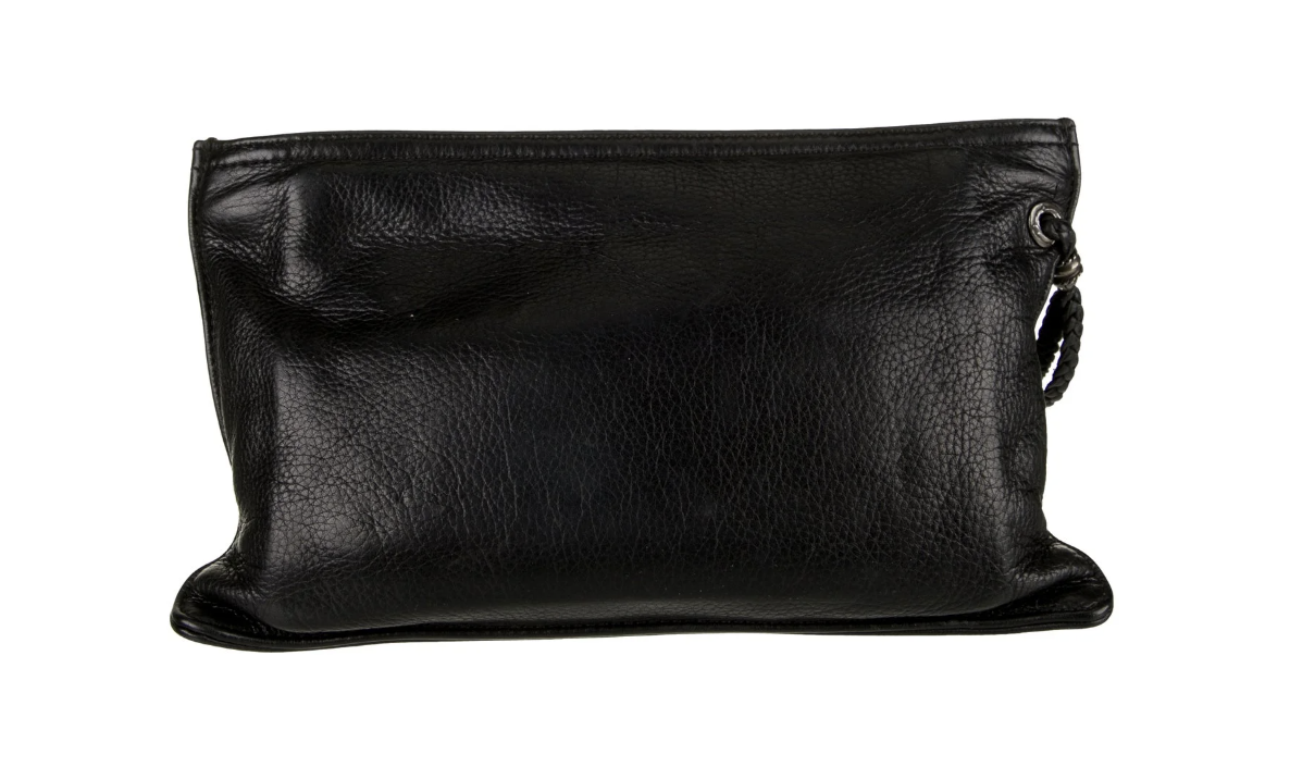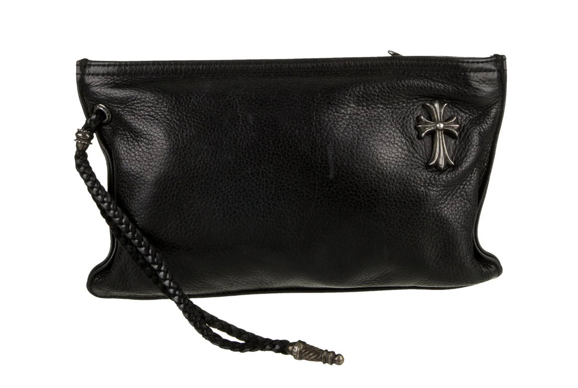 Chrome Hearts Silver Cross Leather Zip Clutch