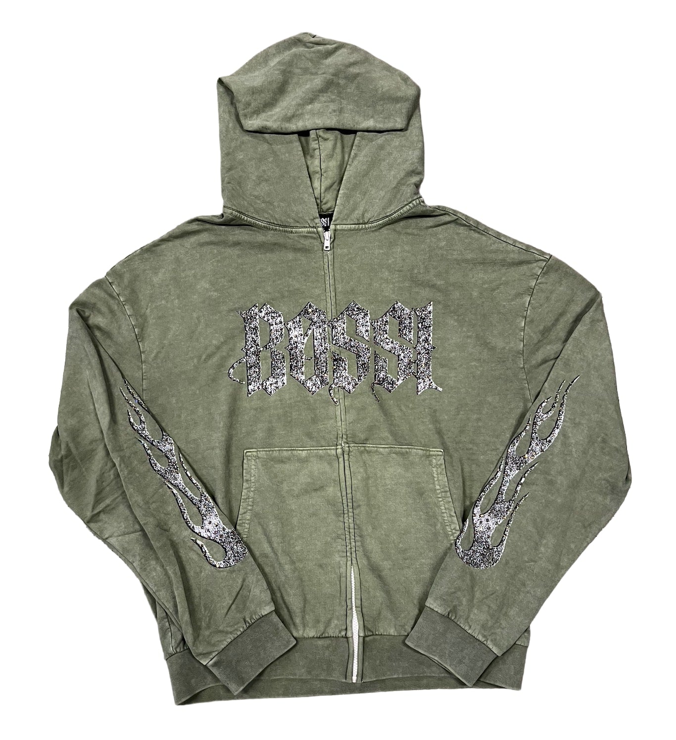 Bossi 'Sage and White' Rhinestone Zip-Up - 881B16AB